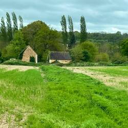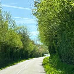 Üppige Wiesen und Äcker, umzäunt mit momentan weiss blühenden und duftenden Weißdornhecken bilden…wie…hm…das Muster einer bunten Patchworkdecke.