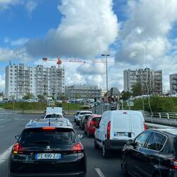 In einer engen Durchgangsstrasse ist eine Strassenseite aufgerissen, nun steht da ein LKW mit Betonmischer um die Löcher wieder zu füllen. Auf der anderen Strassenseite wäre ein Fussweg aber da stehen parkierende Autos. Irgendwann sind wir von vorne wie auch von hinten eingekesselt…nichts geht mehr!