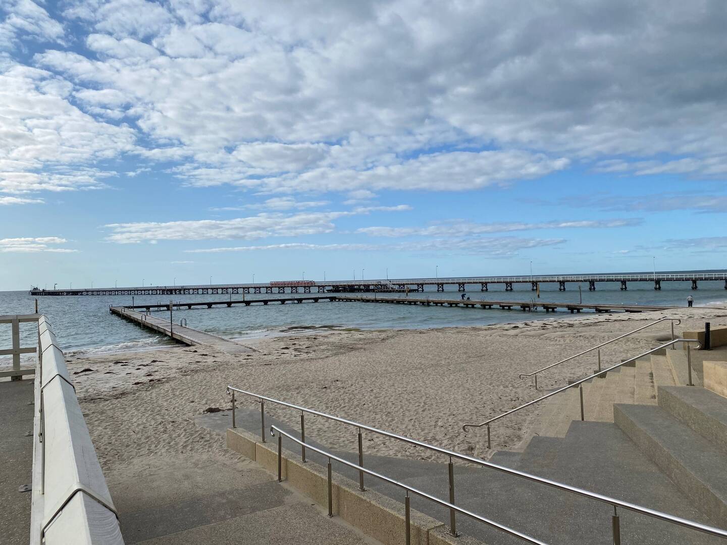 Arrived after lunch, setup and went out for a walk to the end of the jetty and back 3.682 kms out to sea 👍, then stocked up ready for our 5 days touring here.