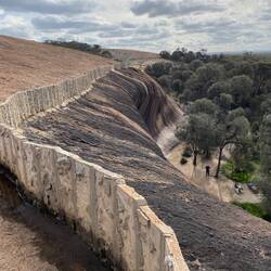 Booked in to wave rock caravan park and met our travel friends, Graham and Jo, went straight out for a walk to Wave rock (650 meters),it’s a granite cliff 15 meters high and 110 meters long, the weather and water erosion has caused it to become a rounded overhang shape over millions of years.
