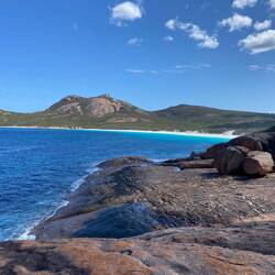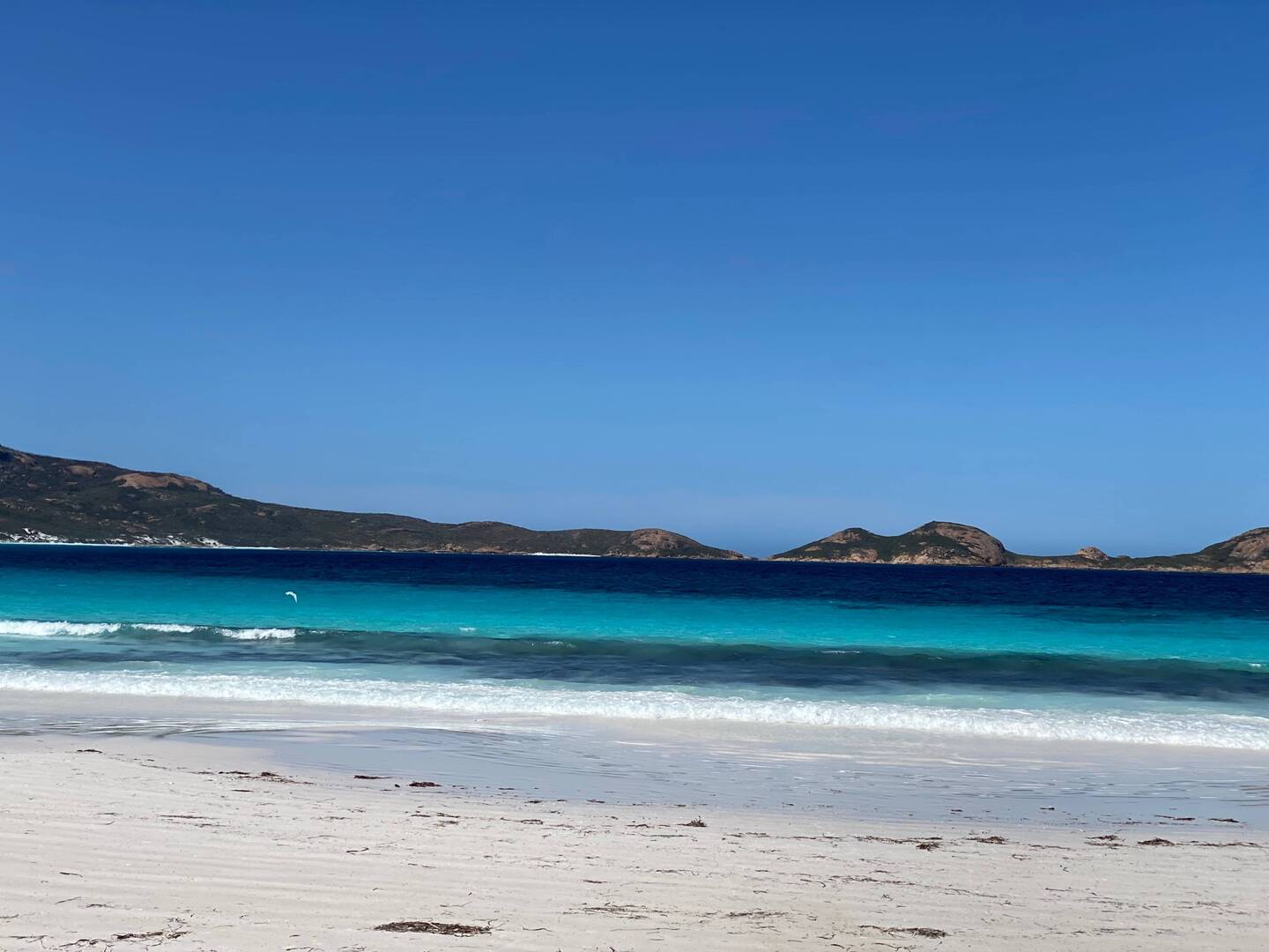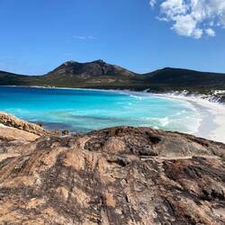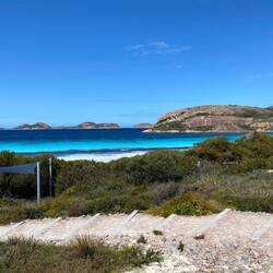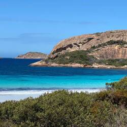 The coastline is incredible, the sand Lucky Bay is a quartz sand that came from the granite rocks and due to weathering over time, if you put them under a microscope you would see they have rough surfaces known as frosting, when you walk on the sand the particles rub together and that causes a squeaking sound.