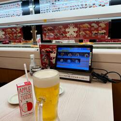 Well, after arrival in Tokyo city we went for a walk and found a great sushi place, food is delivered by sliding tray back and forth from the kitchen your table, different from the sushi trains back home, amazing, and had to have a dessert all washed down with a nice beer 🍽️