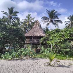 Nach unserer Rückkehr von der Tintipan Insel haben wir einen kleinen Abstecher an den Paya Manzanillo unternommen. Hier Arbeit die Kollegin Claudia von Angelica im Hostel "Zion Beach House".