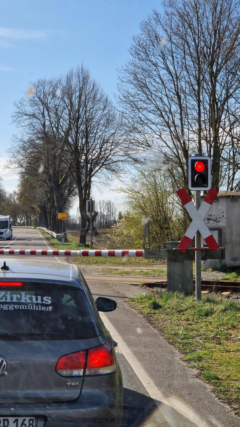 Ist das ein guter Start? ... geschlossene Schranken, aber blauer Himmel😎