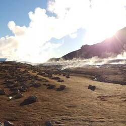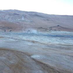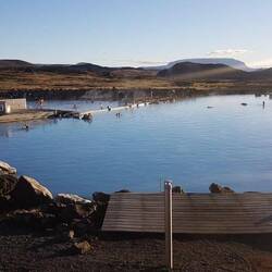 As longas andainas remataron por hoxe, unha pequena subida ao volcán Viti (no camiño hai unha estraña central xeotérmica e preto unha ducha e unha pileta da que sae auga quente, moi cómoda para facer fotos paveras), o zona de sulfaratad de Hverir, a irmá pequena e barata da Lagoa Azul (Mývatn Nature Baths) e a Cova de Grjotagja que merece unha pequena reseña.