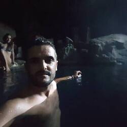 Desviándose da 860 antes de chegar a Reykjahlid atópase cun pequeno aparcadoiro ben sinalado, polo que a cova de Grjotagja non é tan secreta, aínda que a verdade é que non estaba moi transitada, só 3 coches. Nesta gruta gravouse a escena de Game of Thrones na que John Snow intima con Ygritte. Dende o aparcadoiro vense dúas entradas a esa gruta pero uns 50 metros máis á esquerda hai outra máis agochada que non atopariamos se non nos avisara un rapaz ao que axudamos cunha foto. Estabamos sós nela cando entrou unha parella cun guía local. Díxome que a prohibición dos baños que figuran nos letreiros é para que non se ateigue de xente e quede cheo de lixo. Díxome que me podía bañar se respectaba a tradición de facelo espido. En canto marcharon e volvemos estar sós, decateime de que a miña muller manda máis que as tradicións e bañeime cun bañador. Fóra facían 3 graos, e a auga estaba a 43-46... Oxalá a Lagoa Azul puidese proporcionar un pracer así. O mesmo guía díxome que había unha cuarta gruta, aberta no alto, perfecta para ver as auroras mentres tomas un baño; pero negouse a darme a localización, di que é só para locais. Buscámola pola zona seguindo a fenda formada no chan pero non había maneira... só me dixo que estaba máis preto do pobo... quizais para enganar?