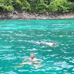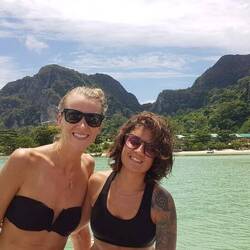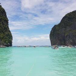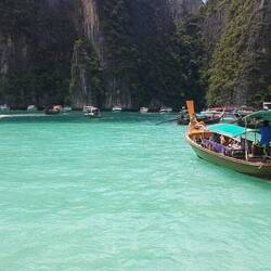 O día seguinte foi a longa excursión, o día amenceu espectacular e o mar estaba en calma. O punto de espera estaba preto do hotel e mentres nos organizaban achegáronse unhas rapazas de Barcelona e Madrid. Foi unha sorte, Ro e Egle son tías marabillosas e non tardamos moito en conectar con elas. Como en Ha Long, a falta de tempo impedíanos facer unha ruta ao noso ritmo, viaxando en ferry ou transporte local. Esta excursión levounos 1200 baths por cabeza nun enorme iate ata Bamboo Island (1 hora - praia espectacular), un paseo sen baño pola Lagoa Esmeralda (a auga máis verde e fermosa que vin, se atopas unha excursión que faga alí o snorkel debe ser alucinante), cova Viking (fotos desde o iate - fomos os 4 os primeiros en entrar e tomamos asentos na terraza de proa para ter as mellores vistas a cambio de estar máis expostos aos botes cando había ondas), Maya Bay (1 hora - a praia é verdadeiramente escandalosa pero desde a famosa película de Di Caprio hai tanta xente e tantos barcos que parece un metro en hora punta - para gozar e facer boas fotos tes que romper a ringleira de bloggers coreanos e meterte na auga); Para comer leváronnos a un comedor dunha zona menos frecuentada de Phi Phi, alí non había barcos nin tanta xente, aínda que a praia tampouco era a máis atractiva (estivemos unhas 2 horas alí) e rematou cunha hora de snorkel en Monkey Beach. Non había monos, pero o snorkel foi unha marabilla porque nada máis entrar na auga, centos de peixes de cores rodeanche e nadan contigo. Unha gran experiencia. Despois de volver a casa, reunímonos coas nosas amigas para tomar unhas cervexas e despedirnos delas, case sen ter tempo de gozar da súa compañía. Estiveron 15 días máis, subindo cara a Bangkok máis tranquilos ca nós. Polo menos estivemos disfrutando da súa ruta dende a distancia, e emocionándonos coas fotos que nos enviaron, sobre todo dende Ko Tao.Læs mere