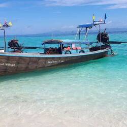 Á mañá seguinte collemos un longtail desde a zona de saída preto do hotel. A viaxe de ida e volta custa 200 bahts por persoa e o barco sae cando hai 10. Cando levabamos 20 minutos agardando, propuxenlle ao resto que comprasemos os billetes que quedaban e puidésemos saír xa. Negociando coa moza, vendeunos as 4 entradas ao prezo de 3. Podes escoller en que praia queres que te deixen: Railay, Tonsay ou Phra Nang (as 3 praias, a pesar de estar a pouco máis dun quilómetro de Ao Nang, non teñen acceso por terra e só se pode acceder en barco). Aínda que elixiramos a 3a, deixáronnos en Railay porque o mar non estaba moi bo e déronnos indicacións para facelo camiñando: dende Railay West atravesas a cidade en dirección a Railay Leste e dende alí diríxeste cara ao sur por un camiño ben sinalado. Das 3, a praia de Phra Nang é a máis fermosa, con augas verdes e varias covas e illotes kársticos nos que se pode nadar. Ata que cheguei non entendín por que a xente percorría tantos quilómetros para ir á praia... que gozo! Bamboe Island ou Esmerald Lagoon fixéronme comprendelo.