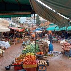 Wanderung durch die Gassen, voll mit Ständen und Waren vom Kuhkopf bis Gewürze.