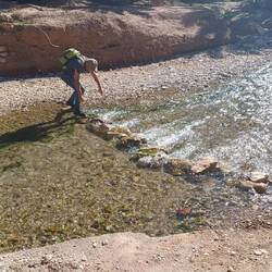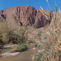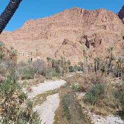 Wanderung entlang der Todra, durch Felder, Palmengarten, Felsen und entlang des Bewässerungssystems.