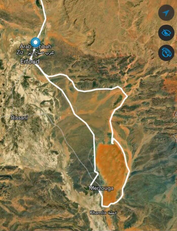 Camping Karla ist Basis für Endurotouren. Wir planen für morgen die Umfahrung des Erg Chebbi auf ex Rallye Dakar Pisten.