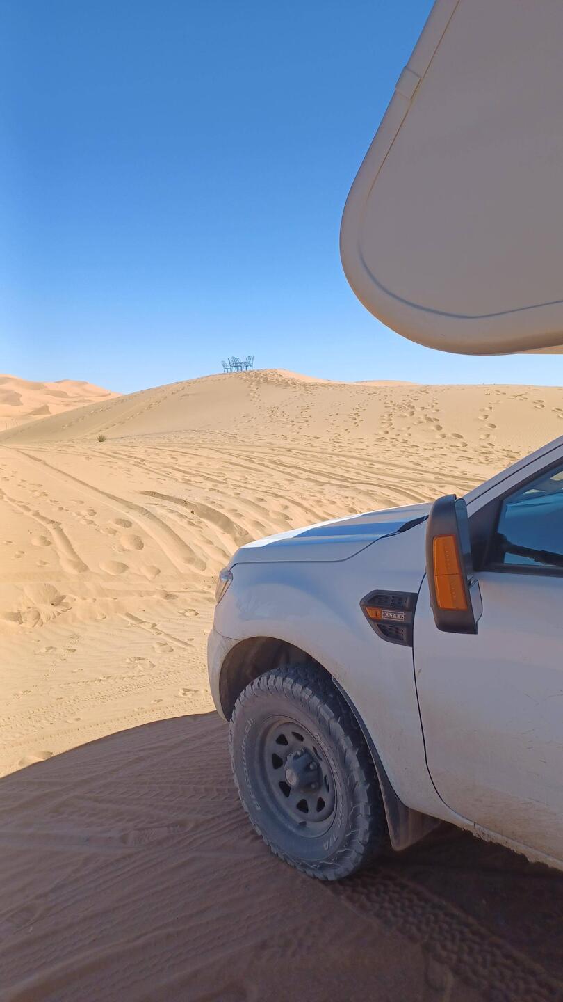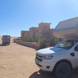 Auf dem Campingplatz empfängt uns Atman, er ist für alles zuständig, schlägt eine Strecke um den Erg Chebbi vor, empfiehlt mir eine Werkstatt in Zagora, weil mein Fahrwerk zu niedrig ist usw.