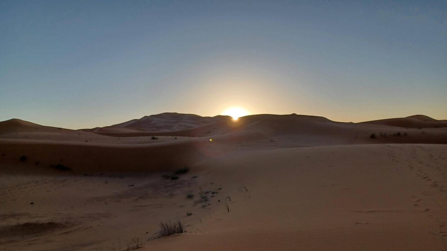 Ein schöner ruhiger Tag am Erg Chebbi. Morgens um 07:30 ging ich dem Sonnenaufgang bei 6° entgegen.