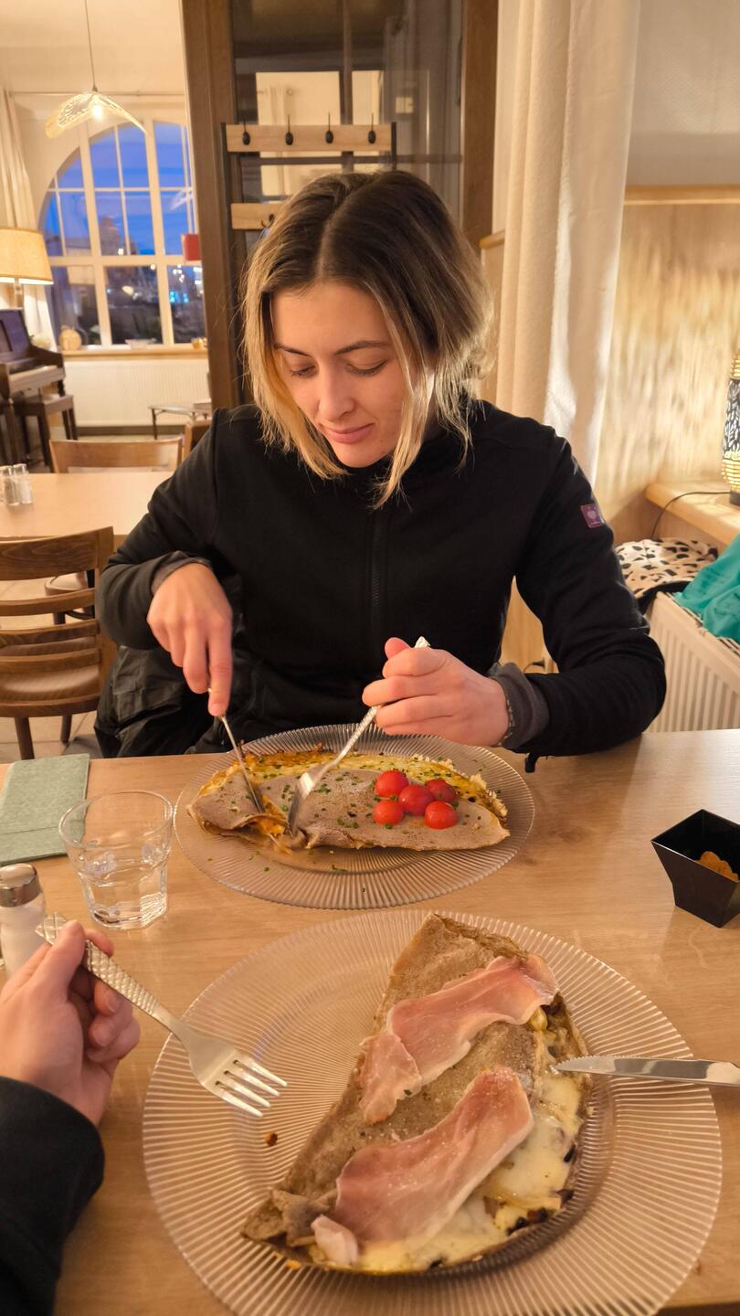 Schon so oft sind wir hier vorbei gefahren, doch heute halten wir spontan an, wollten eigentlich nur Kaffee, doch der Buchweizen Crepe sah einfach zu gut aus. Unerwartetes Abendessen 😉