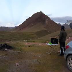 Nach unserem Werkstattbesuch in Ollantaytambo, ging es weiter, zum Regenbogenberg. Dort angekommen, richteten wir unser Nachtlager ein, kochten noch entspannt und konnten den Sonnununtergang zwischenLeia mais