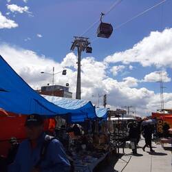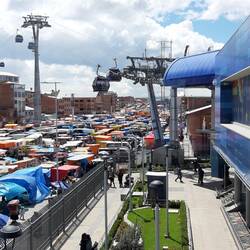 Am 2. Tag wollten wir endlich mit den Linien der Teleferiqo fahren. Zuerst ging es für Jens aber zum Barbershop um Haare und Bart pflegen zulassen. Danach stiegen wir in eine der ersten Seilbahnen ein und es ging für uns nach El Alto. Oben angekommen, konnten wir den riesigen Freiluftmarkt besuchen und staunten nicht schlecht, was dort alles angeboten wurde. Von Autoteilen (auch viele gebrauchte Teile) über Töpfe, alte Handys, Nägel, Kleidung und Co., gab es so ziemlich alles. Danach ging es wieder mit der Seilbahn runter nach La Paz, um noch ein bisschen durch die Straßen zu bummeln. Die Fahrten mit den Seilbahnen, sind ein tolles Erlebnis und eine super Möglichkeit um die ganze Stadt sowie die Umgebung zu überblicken.