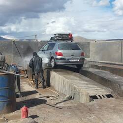 Wieder in der Stadt, fand sich zuerst keine Waschanlage die geöffnet hatte. Also hieß es erstmal Mittag essen. Als wir endlich eine Waschanlage fanden, durften wir noch 1 Stunde warten und verabschiedeten uns so langsam von dem Gedanken, an diesem Tag schon an der Grenze zu Chile zu sein. So war es dann auch und es kam noch besser...