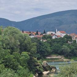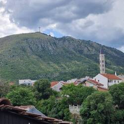 We arrived in Mostar around 12.30 it is a beautiful town. We had a lovely lunch by the river and then arrived back at our air bnb with thunder and lightning but just before the deluge of rain. WillLes mer
