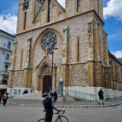 A lovely day in Sarajevo, the weather was much better than forecast and remained dry and pleasantly warm all day. We got up early and went to see the Latin Bridge where Archduke Franz Ferdinand andLes mer