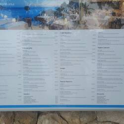 A lovely lazy day... we had a beautiful walk along the coast and went to the supermarket to buy some supplies. It was cloudy but warm. The photo of the menu is a pricey restaurant near the beach....ILes mer