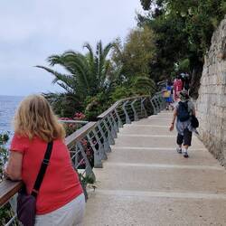 We took a short bus ride from Kotor to Budva. Budva is a much bigger town but has a nice feel to it. We have a lovely little studio apartment....up quite a lot of steps but with a wonderful terraceLes mer