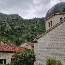 We have arrived in Kotor, Montenegro. We had to stop and exit the bus with passports leaving Croatia and then again about a mile down the road to enter Montenegro (who owns the bit in between?) TheLes mer