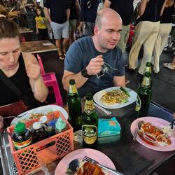 Ending the night with a foot massage, market shopping and roti withLeggi altro