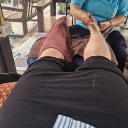 Foot massage on the street, mango smoothie and a second massage (back, neck and shoulders)