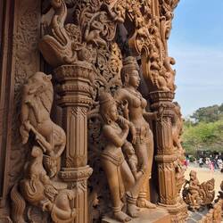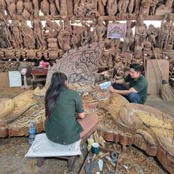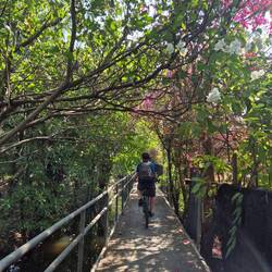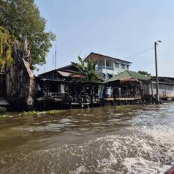 Ferry across the Chao Praya River to a place known to locals as Bang Kra Jao. Like taking a trip back in time - peaceful mazes of waterways, small villages, temples and a tropical jungle.