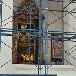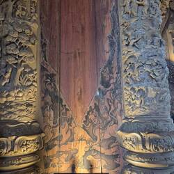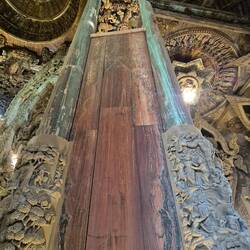 An unfinished museum built entirely of wood. Construction started in 1981.
