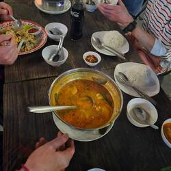 Various soup dishes to start followed by chicken and cashew with rice (super spicy!!)