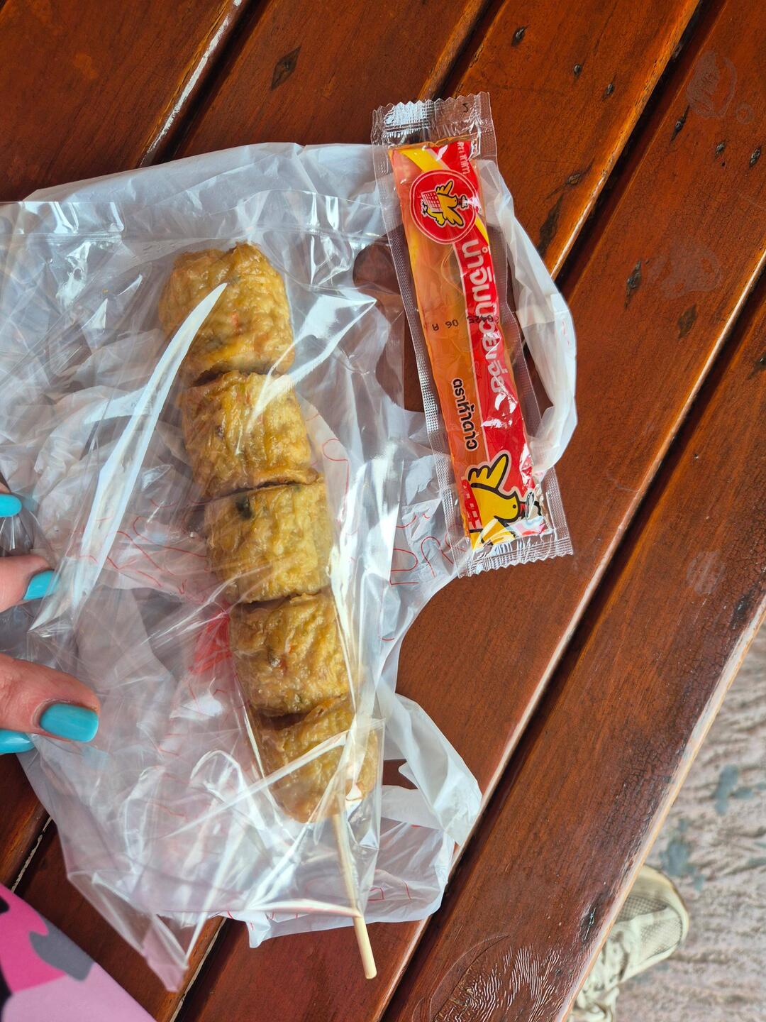 The chicken skewer was 25 baht - about 60p
