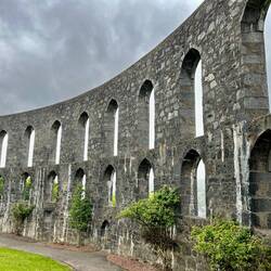 McCaig's Tower ähnelt einem Kolosseum. Inzwischen regnet es wieder, aber von hier oben aus haben wir eine wunderbare Aussicht auf die Stadt Oban, Mull, Kerrera und den Firth of Lorn. Die Geschichte dahinter ist interessant: Im Grunde handelt es sich um ein unvollendetes Bauprojekt, das 1895 von einem örtlichen Bankier namens John Stuart McCaig im Alter von 70 Jahren begonnen wurde. Sein Ziel war es, den örtlichen Steinmetzen über die Wintermonate Arbeit zu verschaffen. Das Projekt wurde jedoch nie fertiggestellt, da er 1902 starb. Niemand weiß wirklich, wie das fertige Gebäude ausgesehen hätte, aber das, was jetzt noch steht, bietet einen interessanten Aussichtspunkt über Oban, der einen Besuch wert ist.