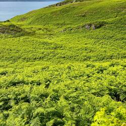 Was uns allen auffällt, ist das üppige Grün des Farns, der hier alles erobert hat. Farn so weit man sehen kann …