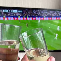 Wir fahren zum Tesco und dann zurück ins Hotel. Duschen, essen und dann (natürlich) Fußball gucken … - und Deutschland gewinnt 5:1 gegen Schottland 🙈
