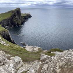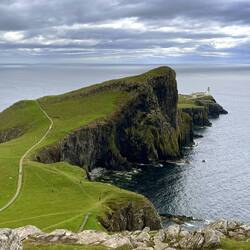 Das Wetter weiß noch nicht richtig, was es will - und wir eigentlich auch nicht - aber wir entschließen uns, zum Leuchtturm zu fahren bzw. zu laufen. Gesagt, getan - es ist 18 Uhr - wir lassen das Auto an dem kleinen Parkplatz stehen und laufen im beginnenden Regen zum Eilean Glas Lighthouse.