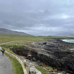 Gegen Mittag sind wir dann auf der westlichen Seite - der Seite der langen Strände angekommen. Vieles kommt uns hier bekannt vor. Das Auto lassen wir am Hebrides People Vistor Centre stehen in Northton und laufen die Strasse bis zum Cafe Temple hinauf. Das heben wir uns aber für später auf … Vom Northton Beach laufen wir hoch bis zum Toe Head.