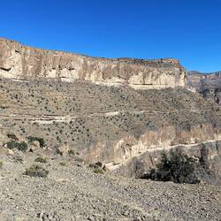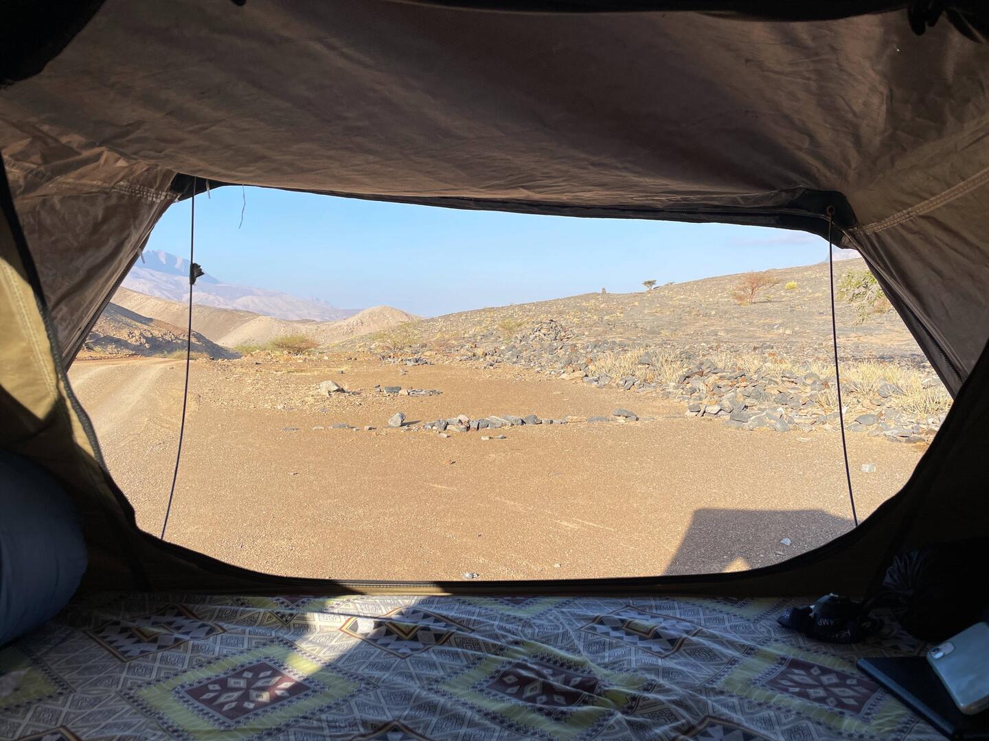 Unser nächster Stellplatz war auf einem Hügel, von welchem man einen top Ausblick auf das Wadi Bani Khalid geniessen konnte.
