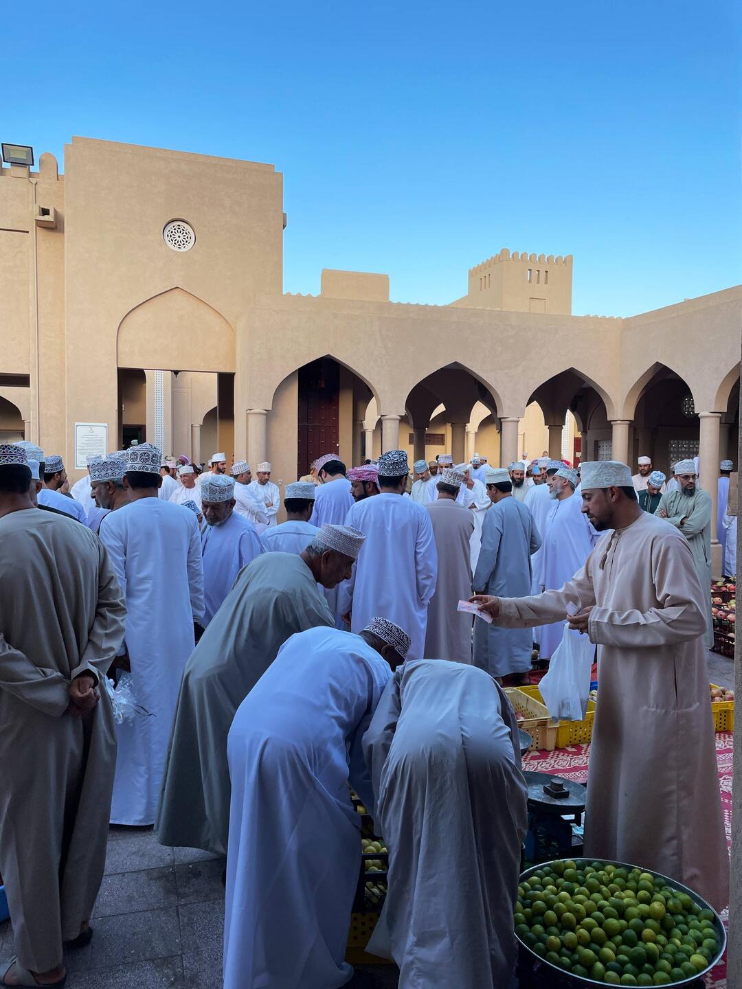 Ein kleines Spektakel am Nizwa Souq, welcher nur Freitags stattfindet. Früchte und Gemüse werden gehandelt, Ziegen vorgeführt und anschliessend an den höchstbietenden verkauft. 🐐