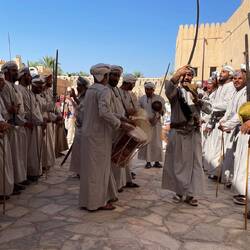 Während unserer Besichtigung im Nizwa Fort wurden wir mit einem traditionellen osmanischen Tanz begrüsst, welcher bei speziellen Anlässe getanzt wird. 🎶