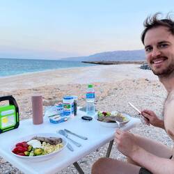Unser heutiger Stellplatz ist an der Klippe zum Fins Beach. Selbstgekochtes Tuna Steak zum Abendessen mit einer Kulisse direkt am Strand. Life is good.