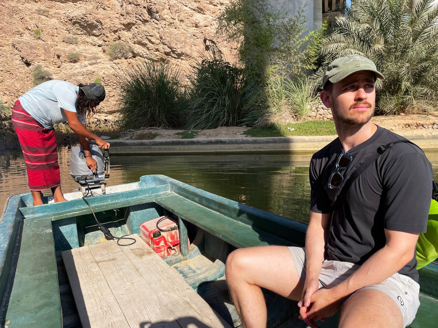 Mit einem kleinen Boot sind wir zum Startpunkt der Wanderung ins Wadi Shab getuckert (knappe 30 sek). 🚣🏼