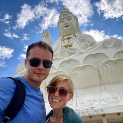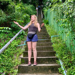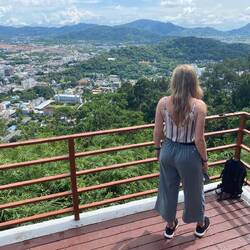 We rode to and explored Old Phuket town today. We enjoyed walking around and checking out the local shops before riding a scooter to Monkey Hill. Got caught in the rain for a few minutes and with theLeia mais