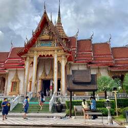 Shoes off with covered legs before you can wonder inside the beautiful Wot Chalong temples. The architecture was amazing both inside and out. After exploring the temples and taking in the culture weLeia mais