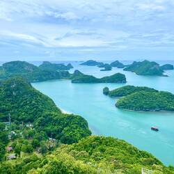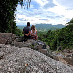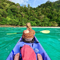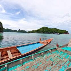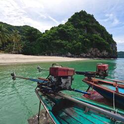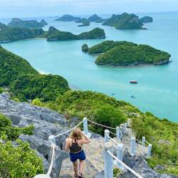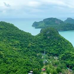 Another early start to catch a speedboat to Ang Thong National Marine park in the gulf of Thailand off the coast of Koh Samui. A bit of cloud cover was welcomed today given we were out sea kayakingLeia mais