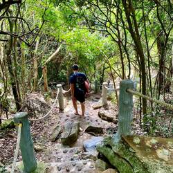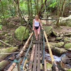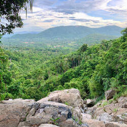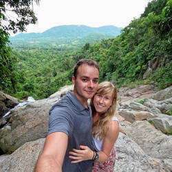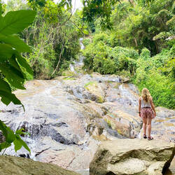 Left Ao Nang at 7am for a transfer and speedboat to Koh Samui. Arrived at 1pm and straight out to hire a scooter. Rode to explore the popular Na Mueng waterfall 1 which was lovely but decided to trekLeia mais
