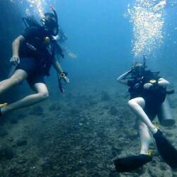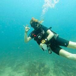 Before the trip started travelling we booked onto a PADI open water diving course in Koh Tao. The three day course when successfully completed will allow us to dive to a depth of 18m. We both passedLeia mais