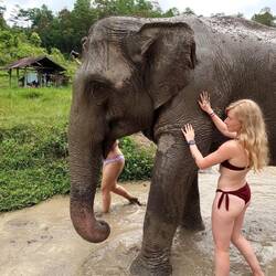 We spent the morning feeding, walking alongside, playing in the mud and bathing a family of elephants at ‘Into the Wild’ elephant sanctuary. Really nice to finally see elephants free roamingLeia mais