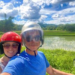 An early start to the day although we stayed inside for this mornings rain to pass. We then left and walked to a local scooter rental shop to rent a scooter for the day costing approximately £5. TheLeia mais