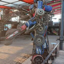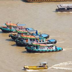 Als wir dann außerhalb des Botschaftsgeländes wieder auf thailändischem Boden waren, überlegten wir, was wir aus dem angefangenen Tag noch machen könnten. Wir entschieden uns für eine Fahrt auf die andere Seite des Flusses zur Mall Icon Siam. Dort waren wir gemeinsam zuletzt mit Anette und Gerd im Februar gewesen. Wir haben den Bummel über den Sook Siam, einen bunten Markt mit vielen lokalen Produkten, sehr genossen. Traditionell haben wir dann im Terrassenrestaurant im 6. Stock zu Mittag gegessen und die Aussicht auf das Leben am und auf dem Fluss als immer wieder neu und spannend empfunden.